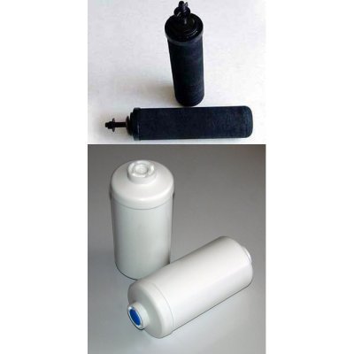 British Berkefeld filters use the age-old process of micro-porous filtration used by nature coupled with modern state-of-the-art technology and the highest quality materials to produce one of the finest water filtration systems available anywhere. At the core of the sub-micron ceramic filter is the most basic of elements: Diatomaceous Earth. This is the same substance, which artisans refine into exquisite porcelain and pottery.The microscopic pores of the ceramic filter element make it an extremely efficient filter for the reduction of particulate matter, pathogenic bacteria and fine sediment from water. Minute particulate matter will quickly plug media style filters, but the ceramics have the added benefit of being re-cleanable and re-useable.The Super Sterasyl element, used in Berkey systems, utilizes the latest technological advances of ceramic filtration by incorporating pure silver impregnation into the porous ceramic shell to inhibit the growth of bacteria.Furthermore, the Super Sterasyl ceramic filter elements contain activated carbon, which reduces unwanted chemical and organic compounds from the water while also improving taste.Each filter can be cleaned many, many times before needing replacement. If using tap water, the filters will normally only need to be cleaned every 6 months. You will know when your filters need to be cleaned because the filtration rate will slow down. To clean, simply rub the filters with a scotch-brite pad under running water (as in the picture above). The carbon inside can also be refreshed by boiling the filters for 5 minutes. See all (2) 7" British Berkefeld Ceramic Water Filters for Big BerkeyOverview